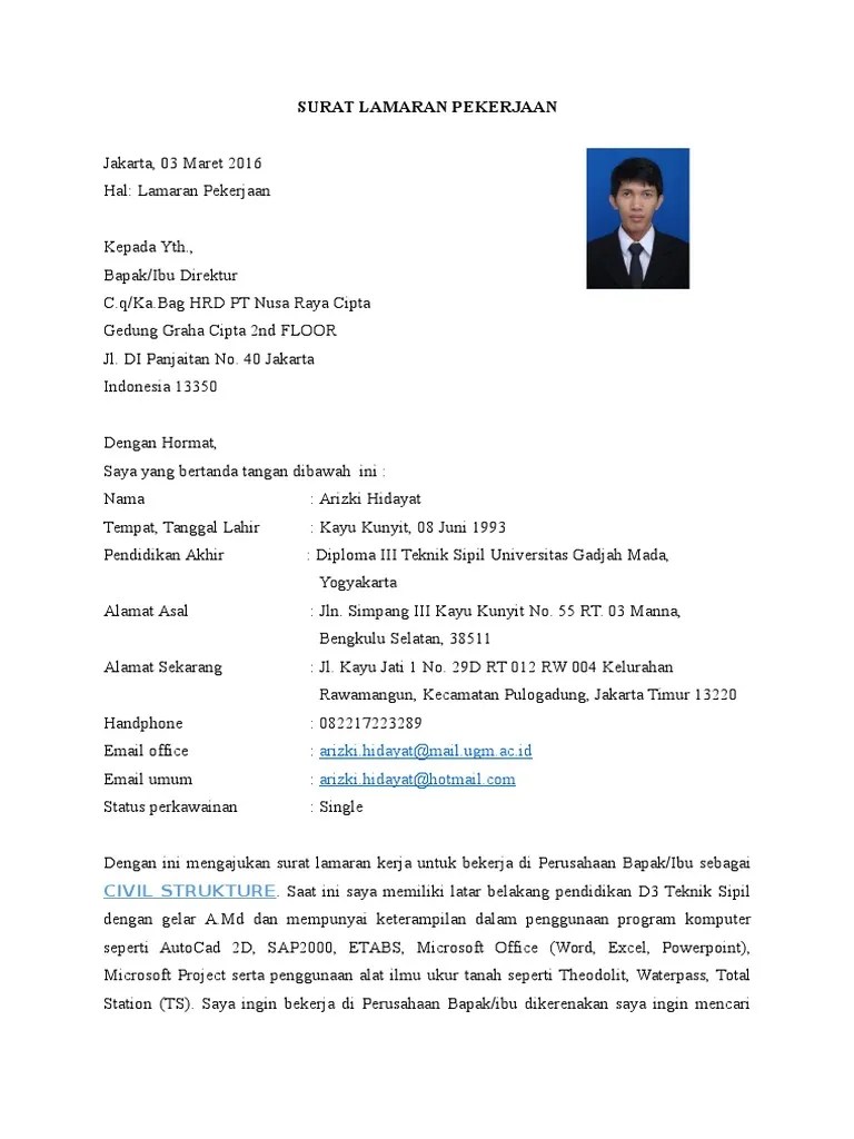 Contoh surat lamaran kerja adalah suatu hal yang sangat dibutuhkan oleh para orang yang sedang mencari pekerjaan yang sesuai dengan keinginannya. Fakultas teknik sipil universitas indonesia cerdas sejahtera kota bandung pusat. Contoh cv teknik sipil bahasa inggris. Contoh cv teknik sipil unnes, contoh cv teknik sipil adalah, contoh cv teknik sipil ugm, contoh cv teknik sipil itb, contoh cv teknik sipil undip, contoh cv teknik. 50 contoh surat lamaran kerja yang baik dan benar doc terbaru 2019.